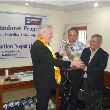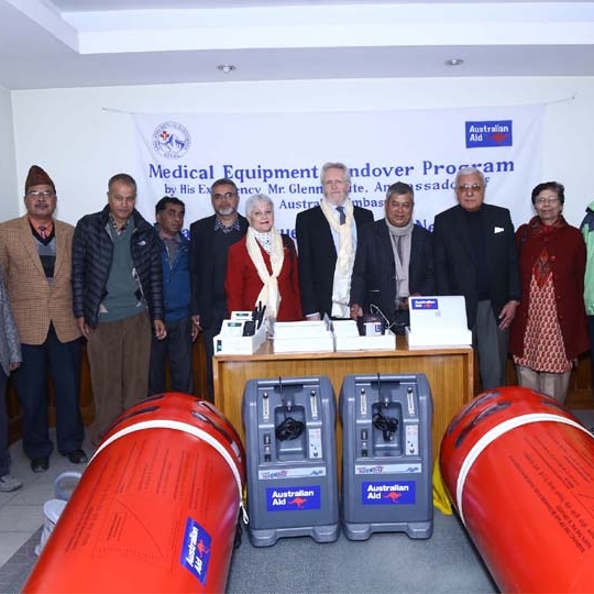 Australian Ambassador to Nepal His Excellency Glenn White handed over the Medical and Communication Equipment to Mr. D.B. Koirala, Chairman of HRA dur...